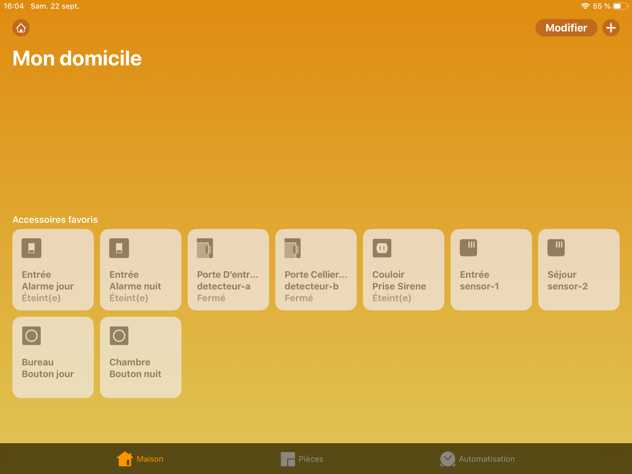 - Homebridge fonctionnel pour iPad et iPhone (exemples ci-dessous)
