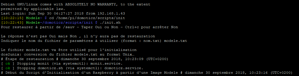 - Modification du script init.sh pour arrêter monit et domoticz au lancement et relancer ensuite