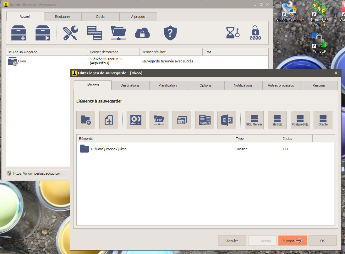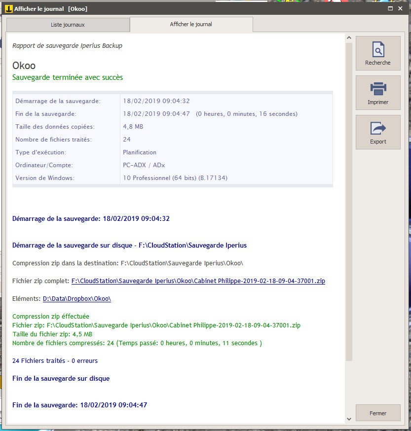 Tout d’abord, faire une sauvegarde locale sur le PC avec le logiciel Iperius (version gratuite).