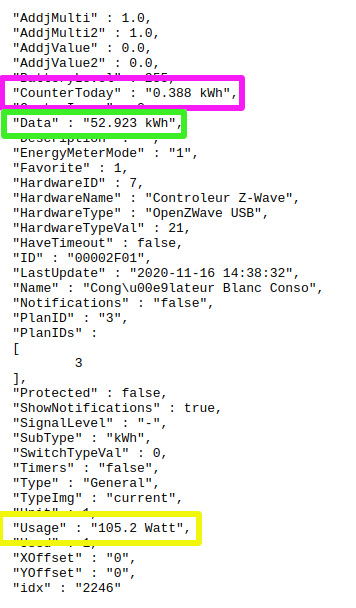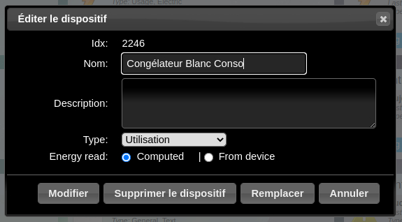 - Dans Domoticz, la valeur de la consommation globale n’est visible que dans la liste des Dispositifs (onglet Configuration)