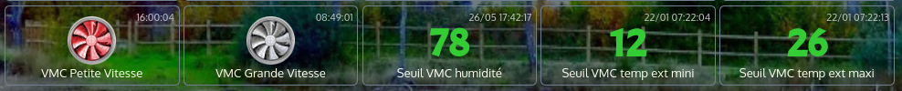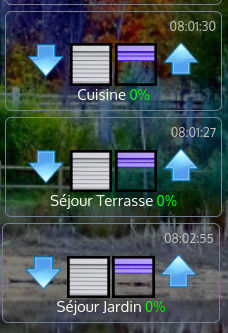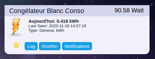 Si je clique (ou si j’appuie sur un écran tactile) sur l’icône d’une prise, le dispositif va changer d’état et l’icône aussi. Si je fais la même chose sur la valeur d’un compteur, je fais apparaître la log de ce compteur (à voir en vidéo un peu plus tard).