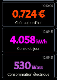 Mais finalement, après réflexion, je me dis que l’affichage du compteur de consommation annuelle en kWh n’est pas d’un intérêt capital et je préfère avoir sur le coût de cette consommation. Je vais donc modifier mon écran Monitor pour avoir l’info qui m’intéresse.