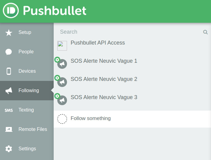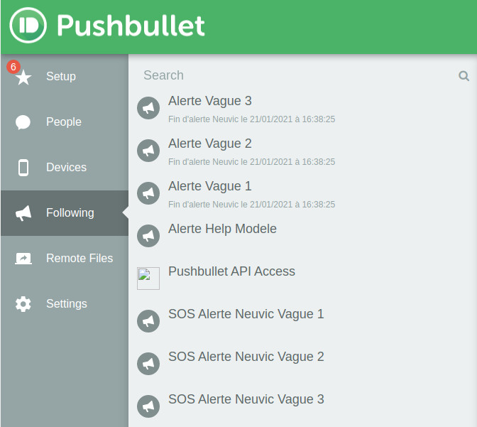 - Abonnement Pushbullet pour les comptes des destinataires – Aucun pb 🙂 : Le déroulement des opérations pour Pushbullet est expliqué dans la galerie ci-dessous. A noter : Comme la vague 2 est un ré-envoi de la vague 1, pour Pushbullet la vague 2 correspond à la vague 3 et la 3 à la 4 ! Peut-être à modifier plus tard pour une meilleure lisibilité/compréhension ?
