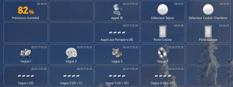 Point 10 Ok fait : Le dispositif de l' »homme mort » (ou de contrôle de la perte de verticalité) est assez difficile à trouver en environnement domestique, mais nous allons utiliser une solution approchante en utilisant tous les capteurs de l’installation domotique prévus pour l’alarme. Le principe, c’est de vérifier si aucun capteur n’a été activé pendant une période donnée.