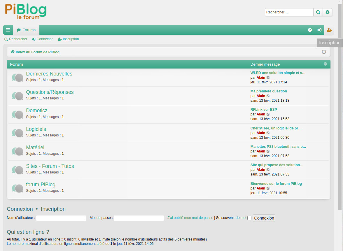Pour toutes ces raisons, j’ai décider de rajouter un forum à PiBlog. Il devrait permettre de répondre aux manques que j’évoquais et améliorer la communication dans notre mini communauté. Comme je suis totalement débutant sur le sujet, je vous remercie de votre bienveillance, mais je ferai le maximum pour que tout fonctionne comme chez les pro.
